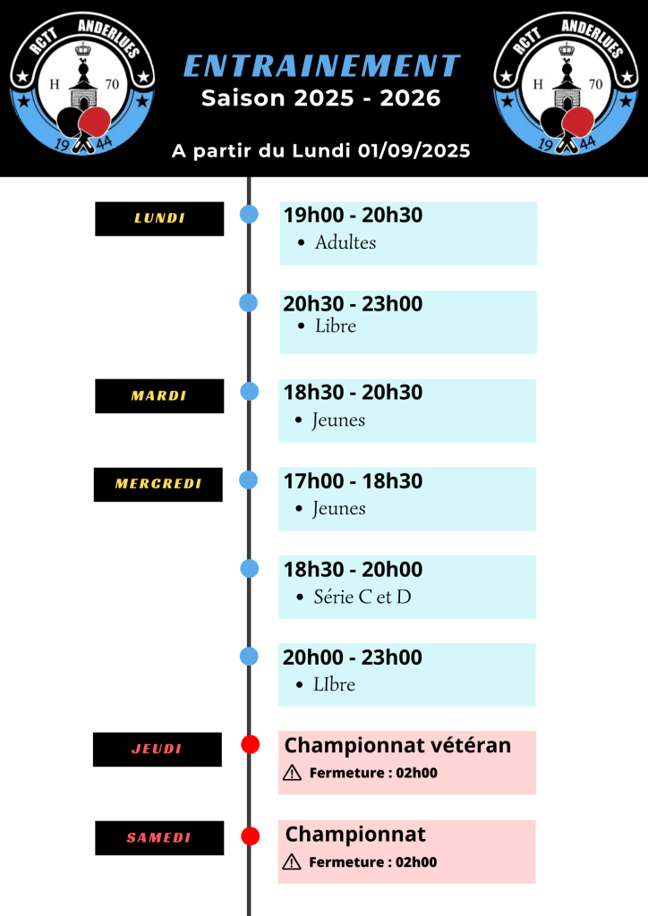 Durant les congés scolaires, il n’y a pas d’entrainements jeunes, ni série C et D. Seule l’entrainement adultes du Lundi ainsi que les libres sont maintenus aux heures habituelles